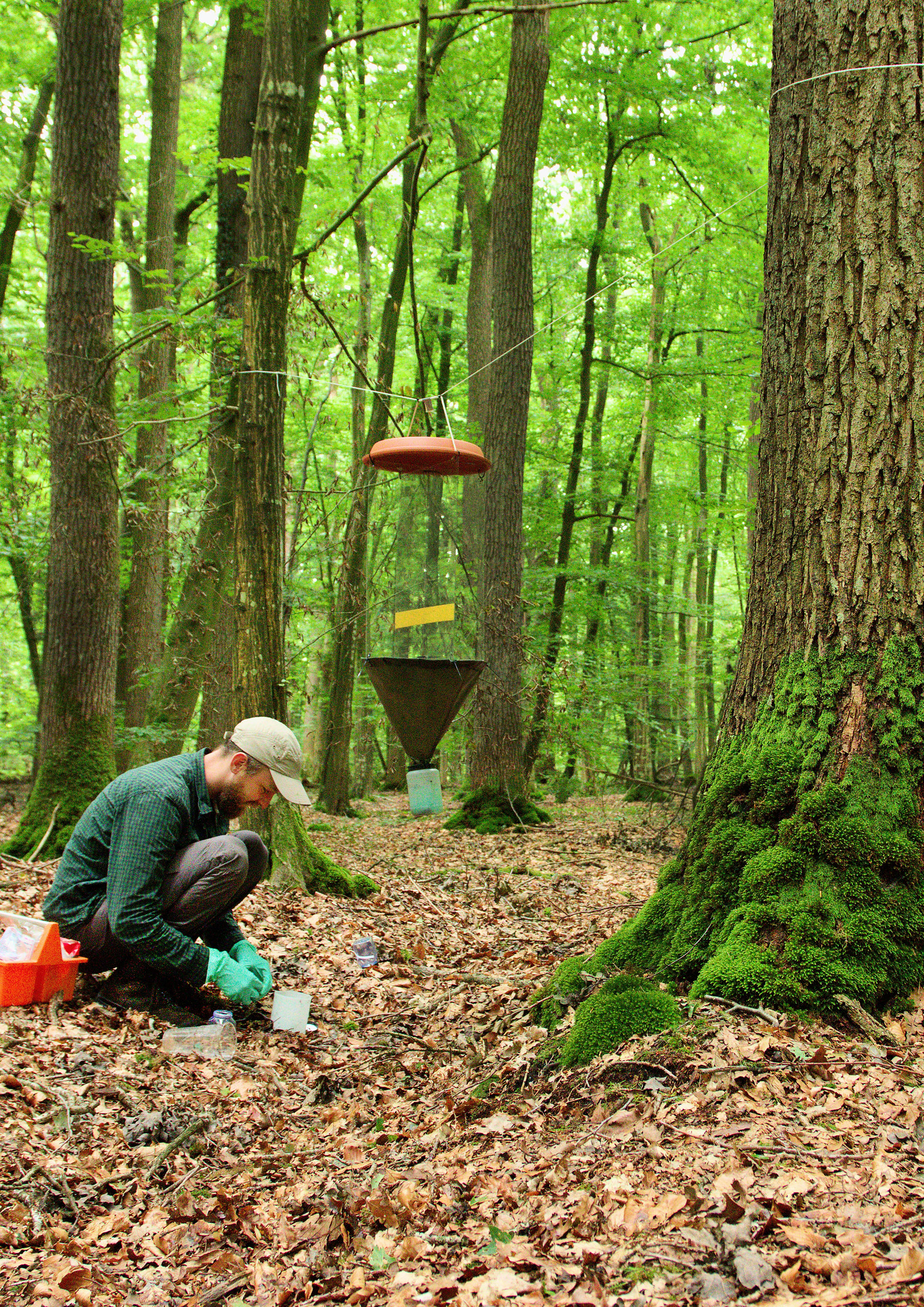 Wissenschaftler:innen der Abteilung Waldnaturschutz erfassen an fast 600 Standorten umfangreiche Daten zu Vorkommen und Häufigkeit von sieben verschiedenen Artengruppen sowie zur Waldstruktur und zum Mikroklima. Mit Pilzen, Totholzkäfern, Laufkäfern, Wanzen und Spinnen wurden sehr artenreiche Gruppen ausgewählt, die im Ökosystem Wald wichtige Funktionen übernehmen. Vögel und Fledermäuse werden mit Audiorekordern erfasst und ihre Rufe mit künstlicher Intelligenz analysiert. Diese innovative Methode liefert ganz neue Einblicke in die Aktivität der Arten und in die Lebensraumansprüche von Vögeln und Fledermäusen an Wälder. „Mit dem großflächigen Einsatz von akustischem Monitoring erwarten wir viele neue Erkenntnisse, insbesondere über die räumlichen und zeitlichen Aktivitätsmuster von Vögeln und Fledermäusen“, erläutert David Singer, wissenschaftlicher Mitarbeiter an der NW-FVA.